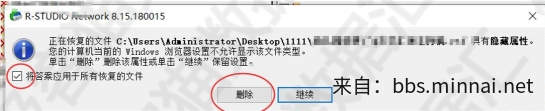 七、导出文件时如果出现以下提示:框框打钩,点击【删除】,或是出现另外一种提示,框框打钩点【重命名】即可。