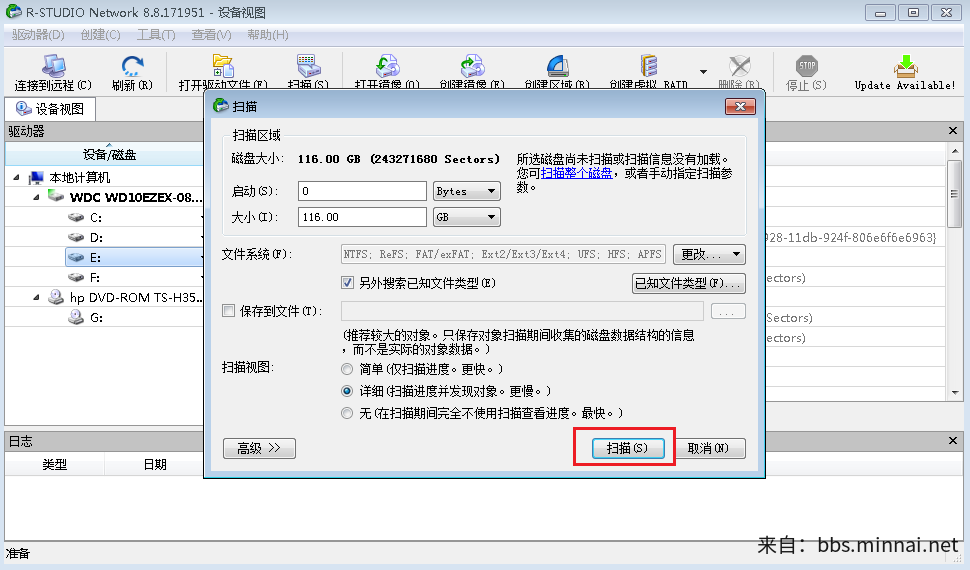 三、无需改变参数,直接点击【扫描】就可以,扫描需要时间,耐心等待。