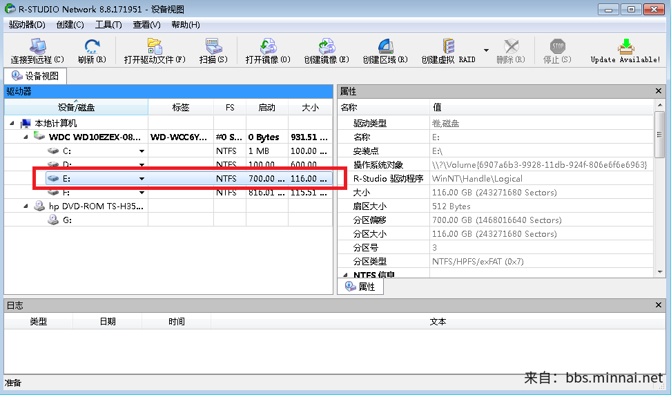 二、安装好进入软件后:选择您要恢复数据的盘符(以我的E盘为例)右键点击【扫描】。