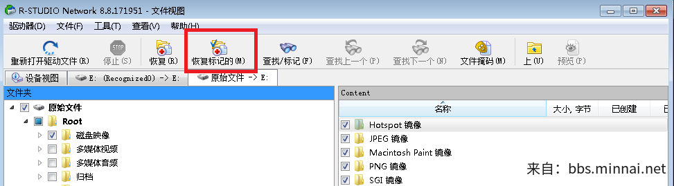 五、进入扫描结果就能看到数据了,勾选您要恢复的数据,再点击上面的【恢复标记的(M)】。